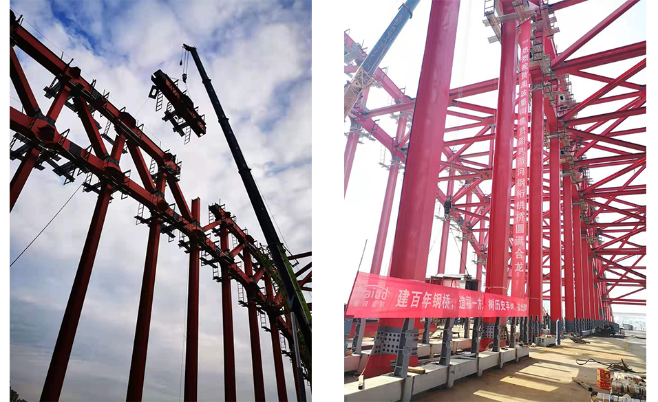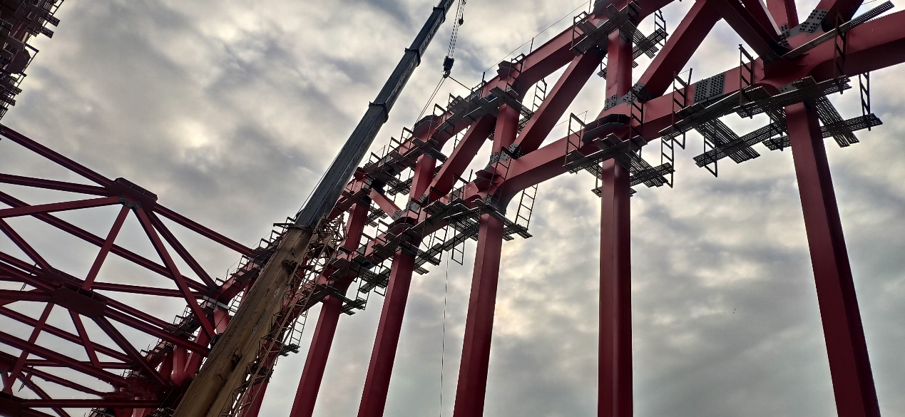 ? ? ? ?上午10時許,伴隨著起吊信號指令的發(fā)出,主拱合龍弦桿順勢吊起,在各方單位領(lǐng)導(dǎo)的共同見證下,歷時1個多小時的主拱合龍段的安裝工作順利完成,標(biāo)志著合肥集賢路跨派河橋主拱正式合龍。合肥市重點(diǎn)工程建設(shè)管理局相關(guān)領(lǐng)導(dǎo)、安徽省公路橋梁工程有限公司集賢路項(xiàng)目部相關(guān)領(lǐng)導(dǎo)、安徽省公路工程建設(shè)監(jiān)理有限責(zé)任公司相關(guān)領(lǐng)導(dǎo)及海波重科合肥集賢路項(xiàng)目部全體人員等共同見證了集賢路跨派河橋成功合龍。