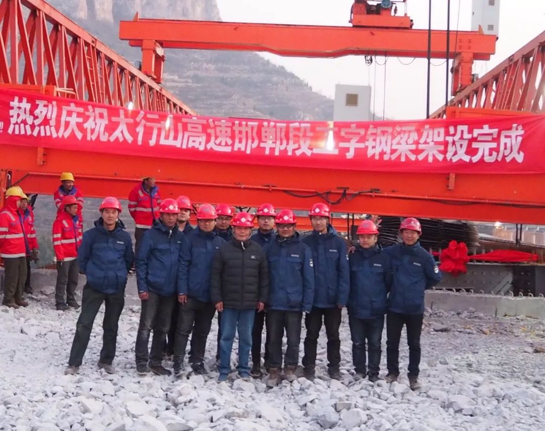 (海波新聞報(bào)道)2019年11月19日,在海波重科總經(jīng)理劉乾俊、項(xiàng)目經(jīng)理部全體員工及各協(xié)作單位的共同努力下,江家1#大橋最后一榀工字鋼梁穩(wěn)穩(wěn)就位,這也標(biāo)志著太行山高速公路邯鄲段全線11座工字型鋼-混組合梁大橋順利貫通。海波重科按照河北省交通廳、業(yè)主單位、總包單位制定的既定工期目標(biāo)保質(zhì)保量的完成了工字鋼梁的架設(shè)任務(wù),這也為順利實(shí)現(xiàn)太行山高速公路邯鄲段年底通車的目標(biāo)奠定了堅(jiān)實(shí)的基礎(chǔ),然而,這一切也絕非偶然。