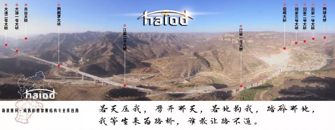太行山高速公路邯鄲段海波重科承接內(nèi)容為全線11座鋼-混組合梁大橋中工字鋼梁的制造及安裝,全線鋼結(jié)構(gòu)工程量約31140噸。該項(xiàng)目地處太行山境內(nèi),地形、道路條件都極其復(fù)雜,施工難度巨大,工期極其緊張,工字鋼梁現(xiàn)場安裝工序繁瑣,現(xiàn)場建設(shè)拼梁場,桿件運(yùn)輸至梁場后拼裝成榀,鋼梁總體采用架橋機(jī)架設(shè),這些因素均為完成本項(xiàng)目的工期目標(biāo)帶來了極大考驗(yàn)。在面對諸多困難的情況下,海波重科總經(jīng)理劉乾俊的舉動(dòng)極大的鼓舞了太行項(xiàng)目部,這也使得太行山高速公路邯鄲段全線11座工字型鋼-混組合梁大橋的順利貫通。