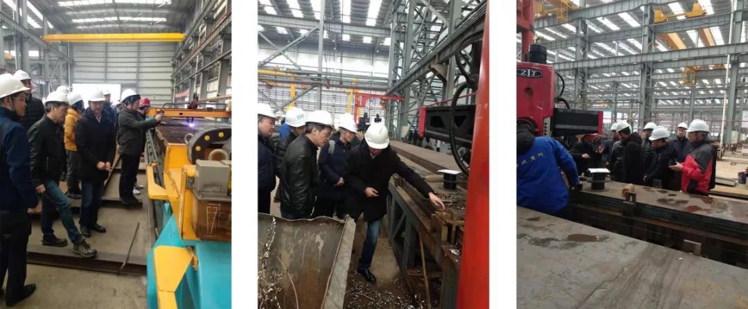 湖北省交通廳建設(shè)處副處長周炎新、湖北省交通廳公路局處長呂厚全、副處長謝華鸞、湖北省院副總監(jiān)張貴士、長江路橋總經(jīng)理王懷才、書記馮太坤、總工楊建波、江北東項(xiàng)目業(yè)主董事長左光恒、副經(jīng)理黃遵義、中交二公院二分院書記孫貴清、工研院副院長夏飛、橋梁院副院長、總工朱玉、四航局一公司副總工程師劉永峰、黃國忠、工研究結(jié)構(gòu)所總工李平杰、北京工業(yè)大學(xué)、同濟(jì)大學(xué)各位老師及領(lǐng)導(dǎo)蒞臨海波重科漢南分公司鋼結(jié)構(gòu)加工廠做現(xiàn)場考察工作。