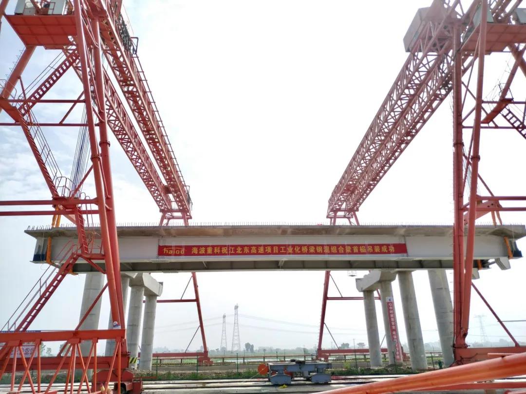 在經(jīng)過(guò)一系列工序轉(zhuǎn)換后,由海波重科承建的江北東高速項(xiàng)目工業(yè)化橋梁鋼混組合梁首吊成功,標(biāo)志著湖北省首例工業(yè)化橋梁實(shí)施項(xiàng)目正式邁入上部結(jié)構(gòu)沖刺階段。為江北東項(xiàng)目2020年建成通車(chē)奠定了堅(jiān)實(shí)基礎(chǔ)。