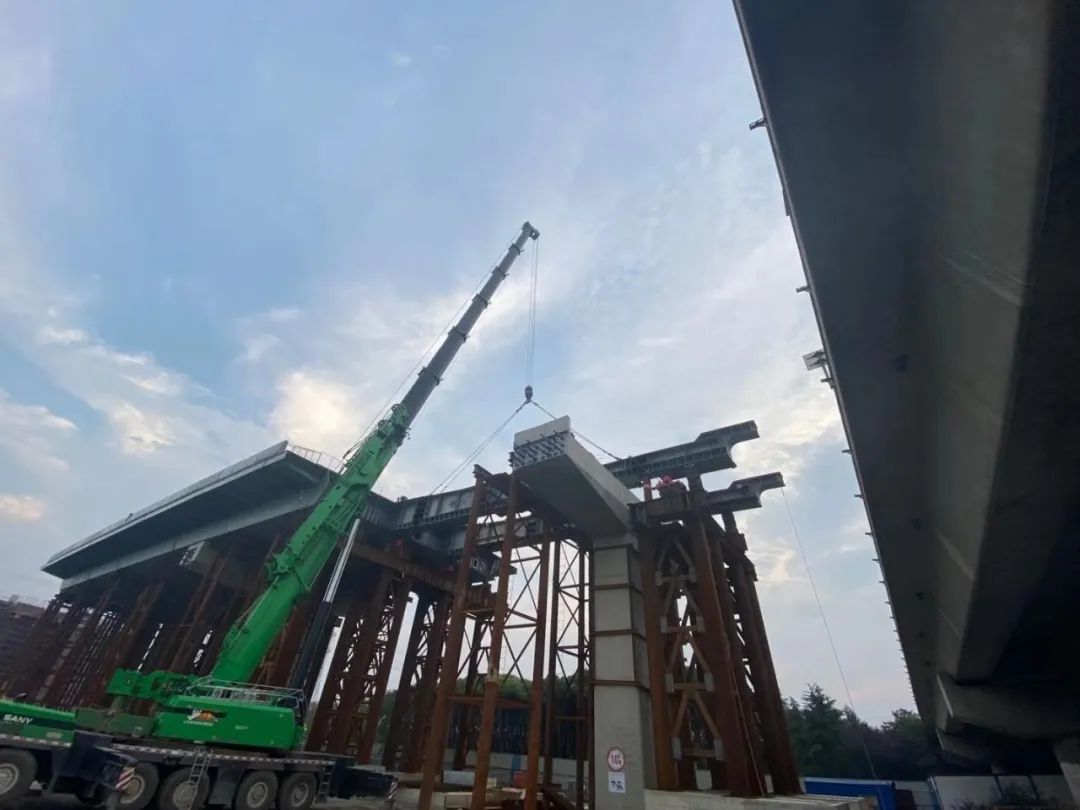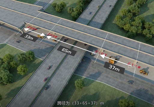 據(jù)悉,高鐵新城快速路連接線是524國道的重要組成部分,也是蘇州市快速路東環(huán)放射線北延伸段,該項(xiàng)目采用全線高架+地面輔路的敷設(shè)形式,路線全長(zhǎng)約1.8公里,其中8#-11#為(33+65+37)m三跨等高連續(xù)鋼箱梁,主跨上跨繞城高速,梁高2.5m,橫斷面為單箱三室結(jié)構(gòu),總寬度26m,總重量2051噸。