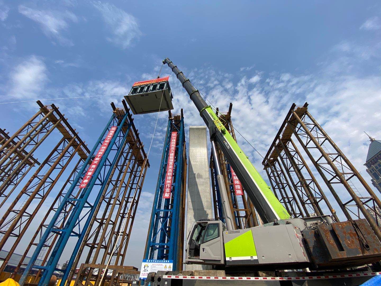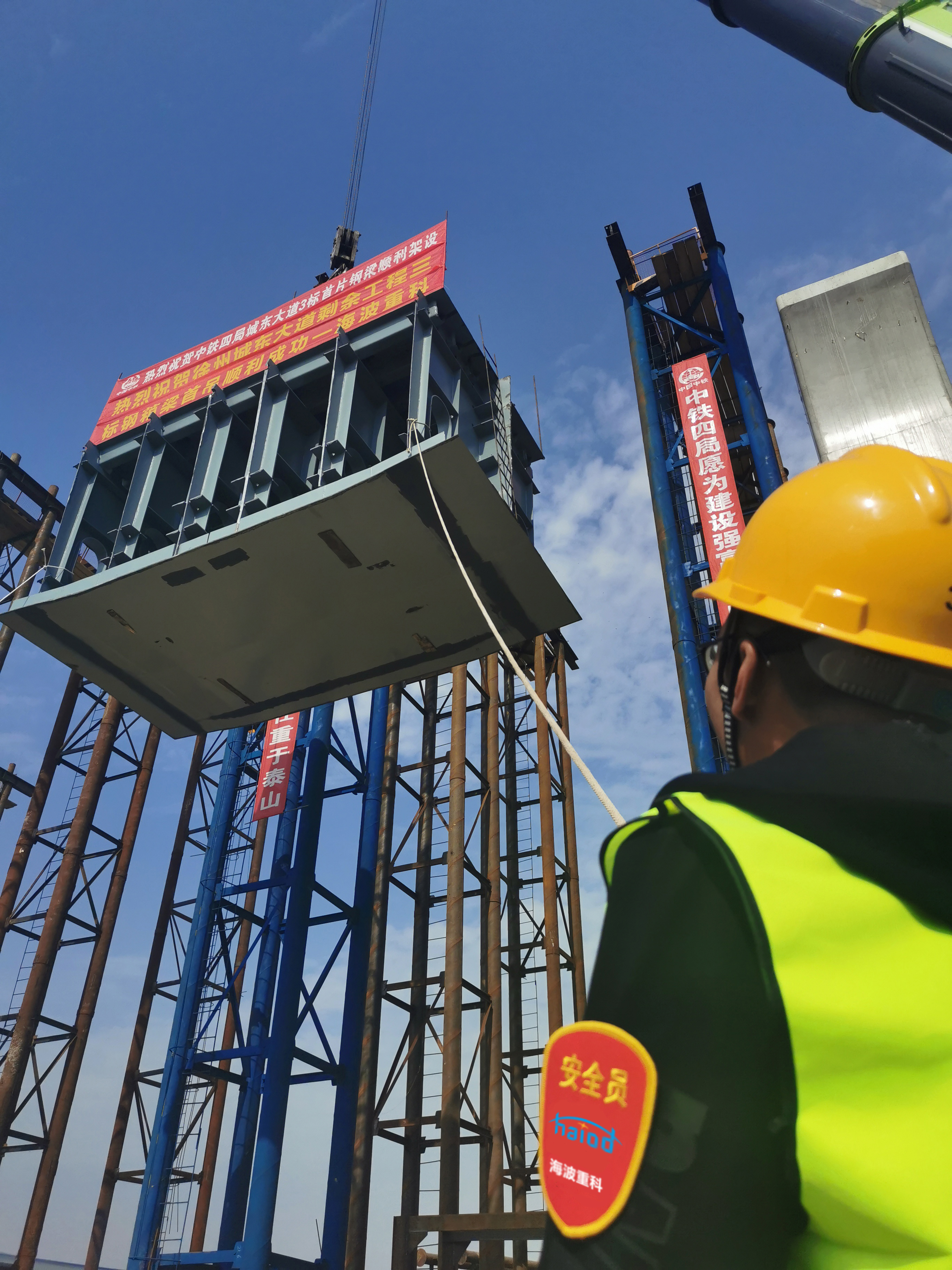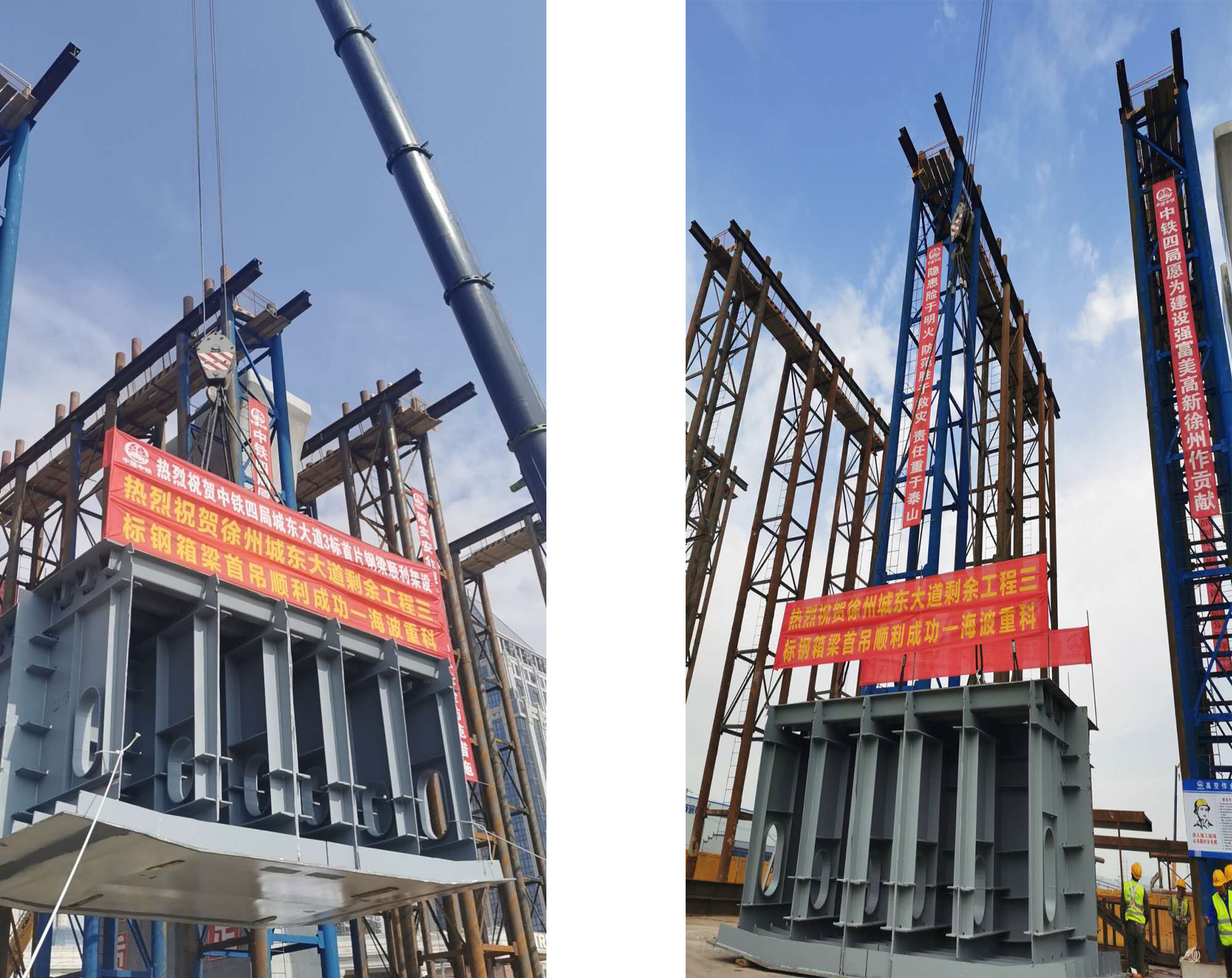 (海波重科新聞報(bào)道)2020年10月26日上午,徐州城東大道項(xiàng)目現(xiàn)場,伴隨著現(xiàn)場數(shù)百人的目光,首片鋼箱梁準(zhǔn)確無誤的落在預(yù)定架設(shè)點(diǎn),這一刻標(biāo)志著徐州城東大道剩余工程3標(biāo)向著全面完工順利通車又前進(jìn)了一大步!