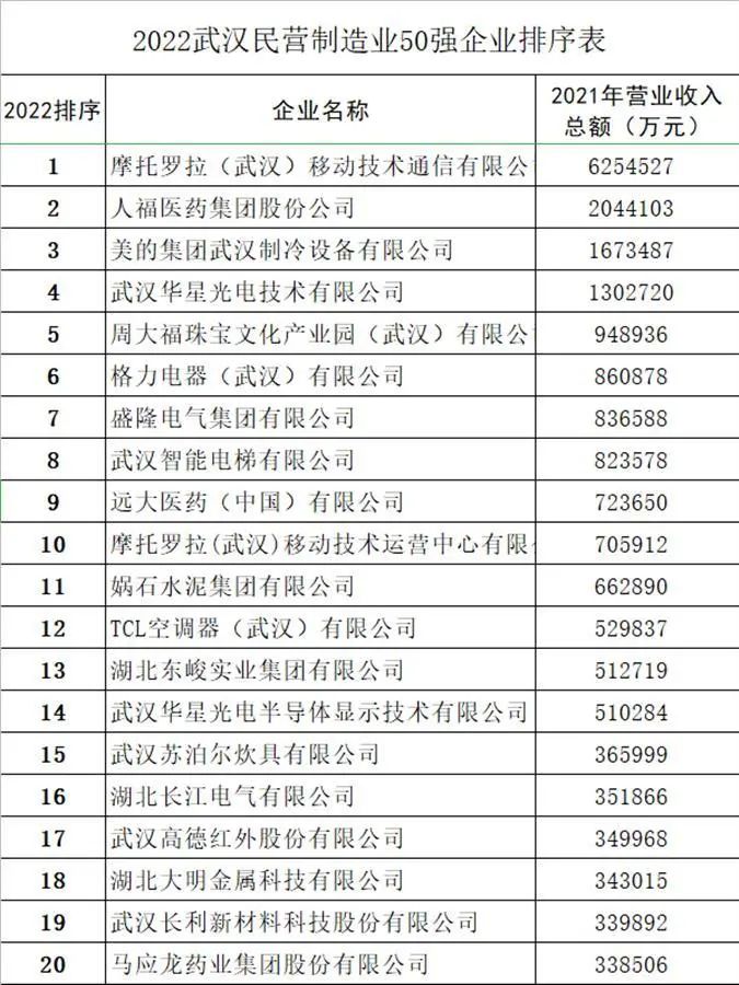 該排序榜由相關(guān)市直部門共同組織,在尊重企業(yè)自主申報(bào)原則的基礎(chǔ)上,以2021年企業(yè)營業(yè)收入總額為依據(jù),由武漢市工商聯(lián)完成。