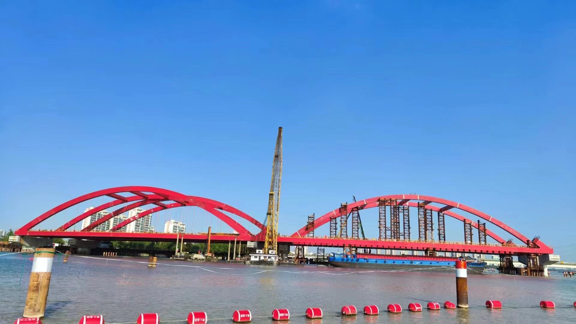 2022年11月16日,海波重科參建項目,大橋主體部分全部順利吊裝完成,預示著離該項目完工已接近尾聲。